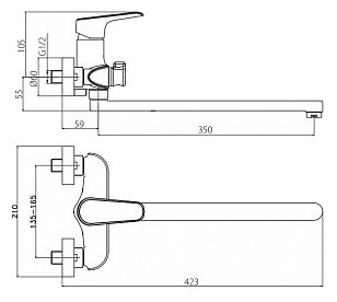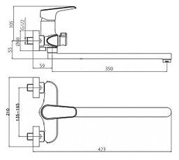 Смеситель для ванны/душа, однорычажный, запорный механизм: керамический картридж, излив: поворотный, материал корпуса: латунь.