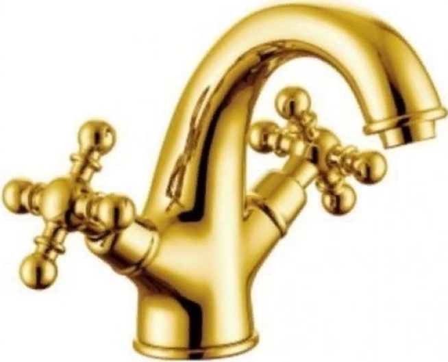 Смеситель для умывальника, двухвентильный, запорный механизм: кран-букса, излив: фиксированный, монтаж на поверхность сантехники, кол-во монтажных отверстий 1, материал корпуса: латунь.
