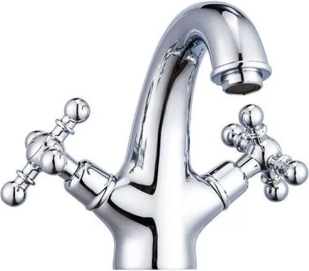 Смеситель для умывальника, двухвентильный, запорный механизм: кран-букса, излив: поворотный, монтаж на поверхность сантехники, кол-во монтажных отверстий 1, материал корпуса: латунь.