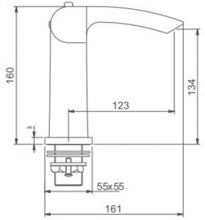Смеситель для умывальника, термостат, запорный механизм: кран-букса, излив: фиксированный, монтаж на поверхность сантехники, кол-во монтажных отверстий 1, материал корпуса: латунь.