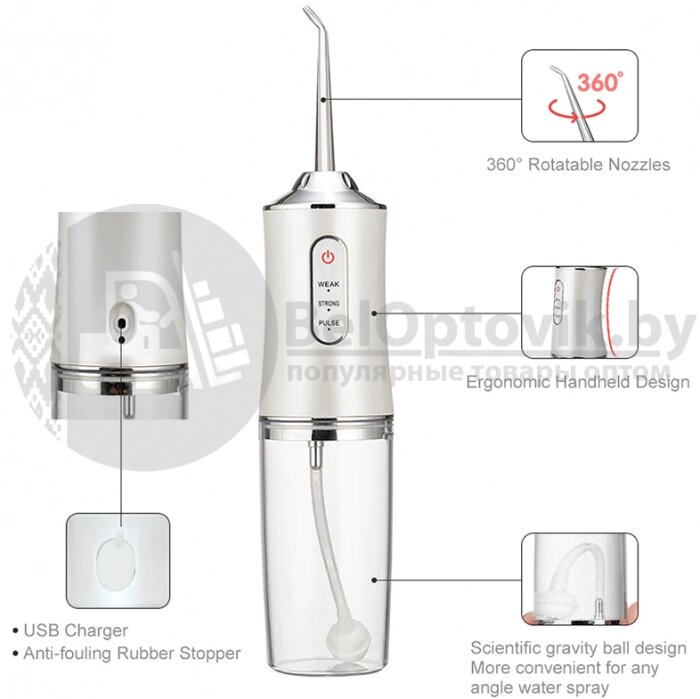 Ирригатор (флоссер) для гигиены полости рта Oral Irrigator 4 сменные насадки Розовый
