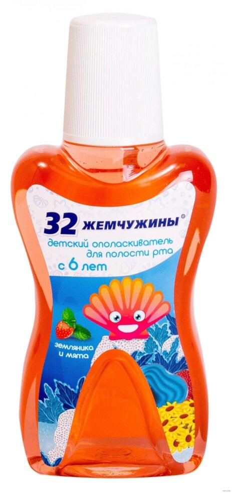 Ополаскиватель для полости рта 32 ЖЕМЧУЖИНЫ детский с 6лет земляника и мята 250мл