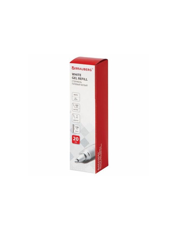 Описание товара Стержень гелевый BRAUBERG "White", 130 мм, БЕЛЫЙ, евронаконечник, узел 1 мм, линия письма 0,5 мм, 170378 (40 шт.)