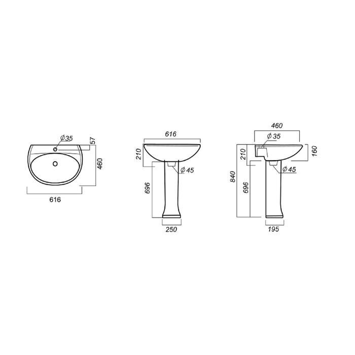 Умывальник «Виктория» с переливом, без пьедестала, белый