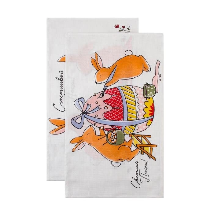 Набор полотенец кух. Доляна "Пасхальные зайчики" 35х60см-2 шт, 100% хл, вафля 160 г/м2