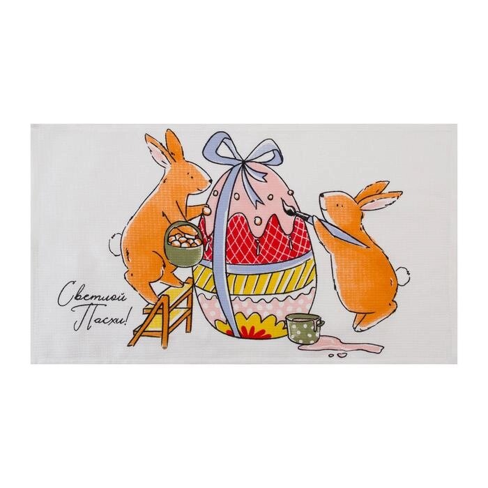 Набор полотенец кух. Доляна "Пасхальные зайчики" 35х60см-4 шт, 100% хл, вафля 160 г/м2
