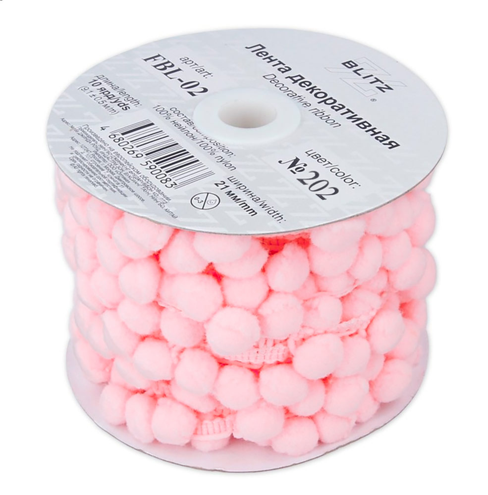 Тесьма декоративная "BLITZ" FBL-02 21 мм №202 розовый