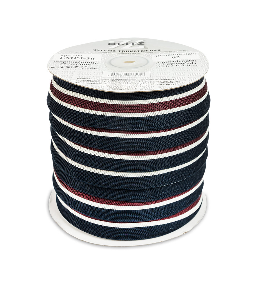 Тесьма декоративная "BLITZ" лампасная LMPJ-30 30 мм 02 т.синий/белый/бордовый/белый/т.синий