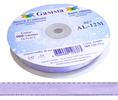 Лента атласная 12 мм двухстор. с металл. нитью AL-12M "Gamma" №040василёк/серебро