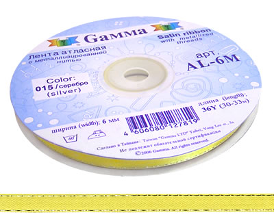 Лента атласная 6 мм двухстор. с металл. нитью AL-6M "Gamma" №080 св.сиреневый/золото