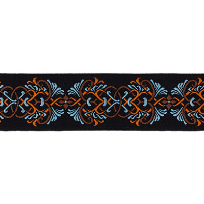 Жаккардовая лента с различным орнаментом - это лента с рисунком, который не наносится сверху, а образуется плетением нитей самой тесьмы, и благодаря этому никогда не сотрется и не поблекнет. Жаккардовая лента выглядит как вышивка гладью, и придает фольклорный колорит любому изделию. Используется в качестве декоративного элемента при производстве одежды, художественных изделий, сувенирной атрибутики и т.п.