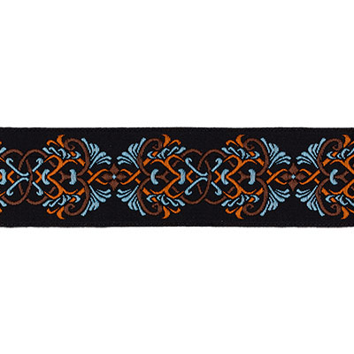 Жаккардовая лента с различным орнаментом - это лента с рисунком, который не наносится сверху, а образуется плетением нитей самой тесьмы, и благодаря этому никогда не сотрется и не поблекнет. Жаккардовая лента выглядит как вышивка гладью, и придает фольклорный колорит любому изделию. Используется в качестве декоративного элемента при производстве одежды, художественных изделий, сувенирной атрибутики и т.п.