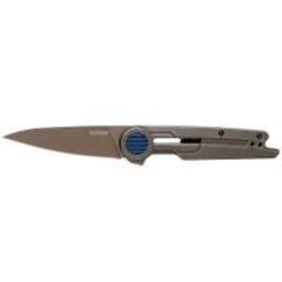 Клинок виводиться в робоче положення невеликим фліппером, вихід легкий за рахунок використання кулькового підшипника на осьовому гвинті. Фіксація відбувається за допомогою замка Frame Lock . Сталь клинка Cr13MoV вважається універсальною для вирішення широкого спектра завдань.