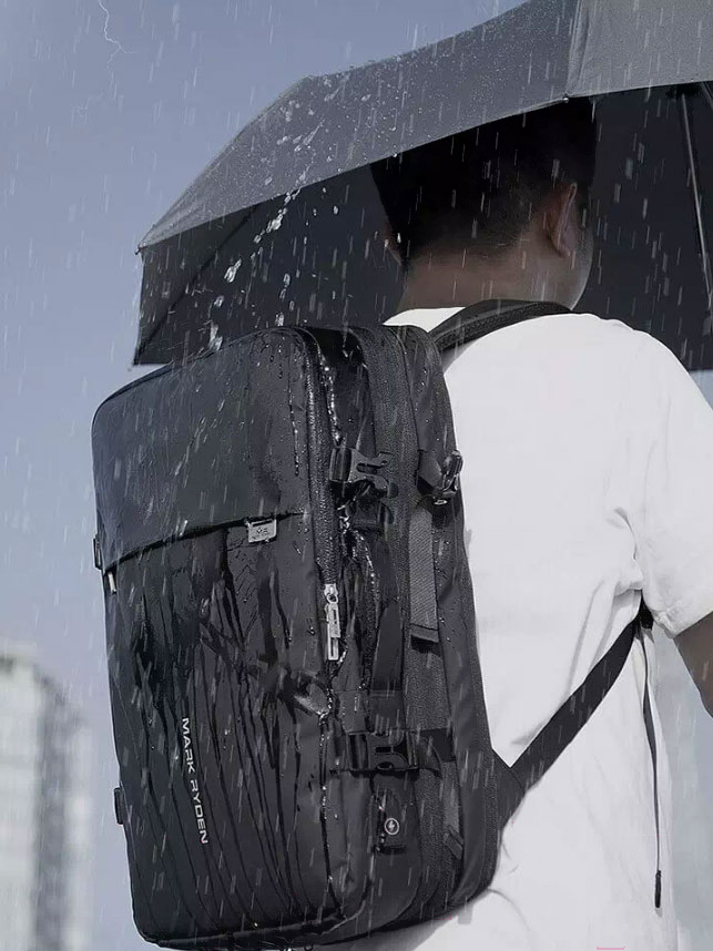 • Внешние элементы карман фронтальный, стропы-стяжки, USB-порт, карман задний (на спинке), крепление к чемодану