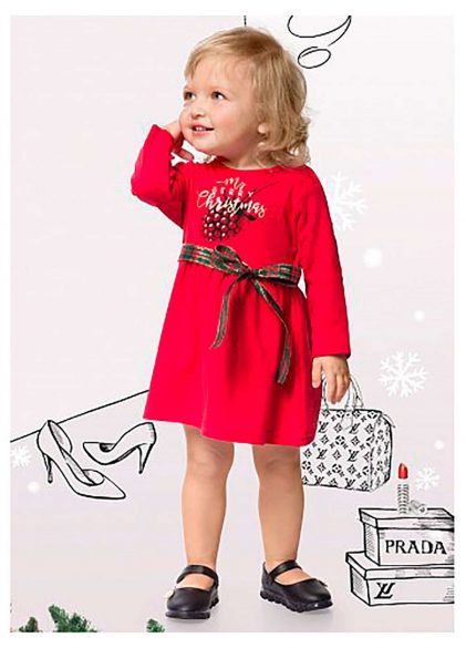 ОсобенностиПлатье для девочек. Нарядное платье, центральный принт с блеском: сочная ягодка и надпись "Моя рождественская ягодка!". Пояс из репсовой ленты (ширина 3 см.), который завязывается на бантик.