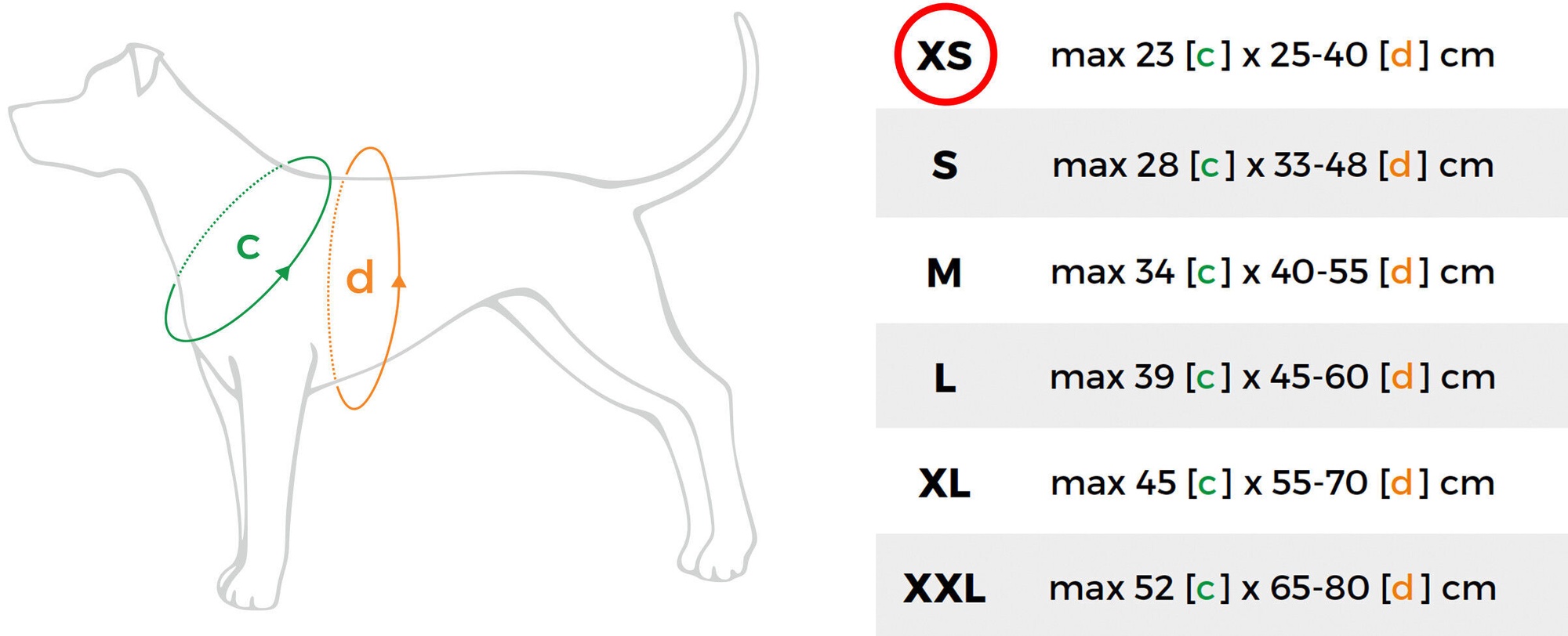 • Дополнительная информация Окружность шеи: 23 см. Регулируемая окружность груди от 25 до 40 см
