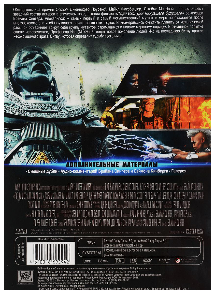 • В ролях Роуз Бирн; Майкл Фассбендер; Николас Холт; Оскар Айзек; Дженнифер Лоуренс; Джеймс Макэвой; Эван Питерс; Джош Хелман; Тай Шеридан; Софи Тернер