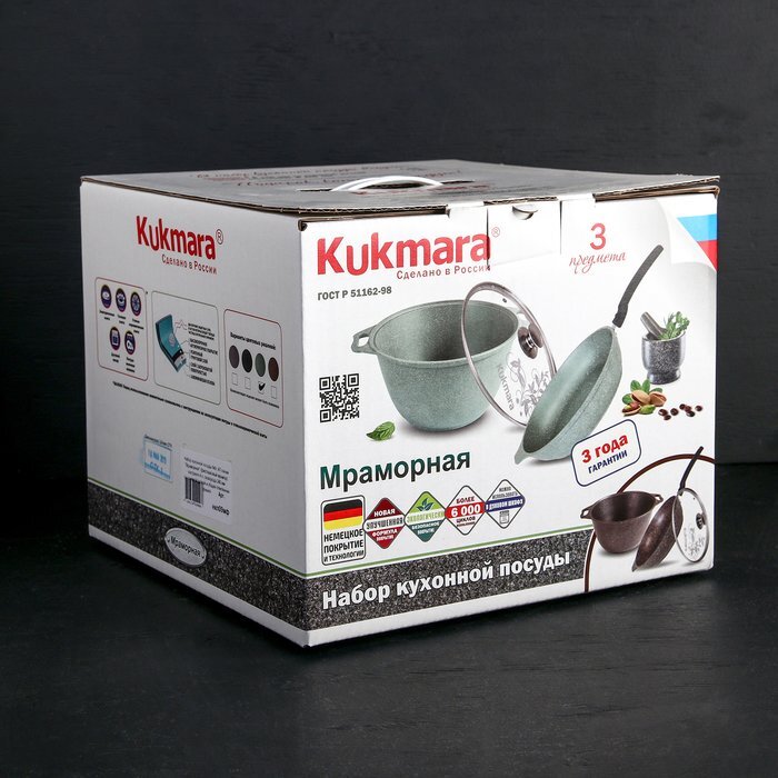 Набор кухонной посуды №9 "Мраморная", АП линия, фисташковый мрамор