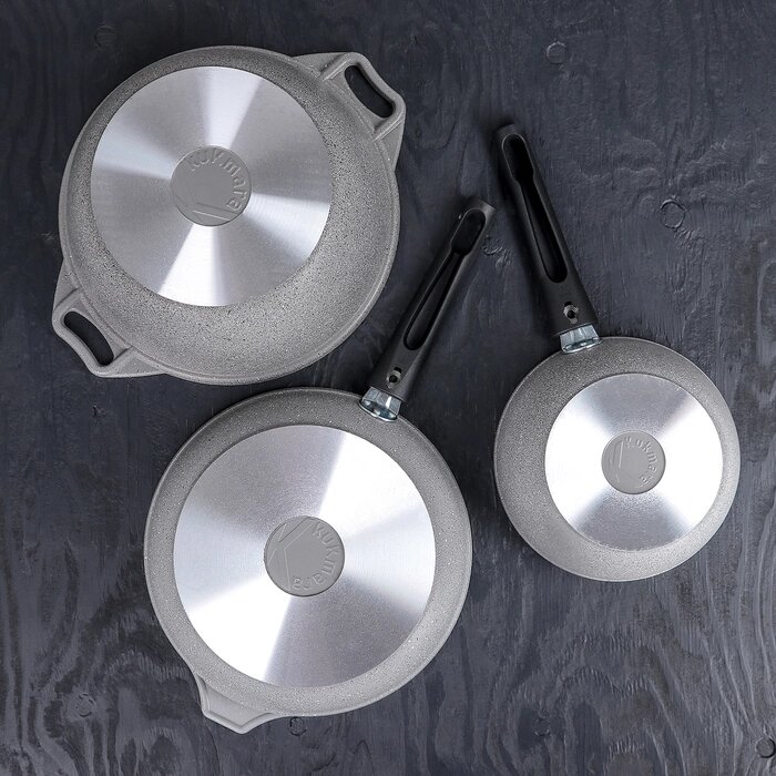 Набор кухонной посуды «Мраморная №4», антипригарное покрытие, цвет светлый мрамор