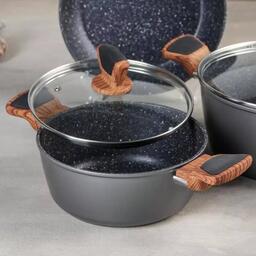Набор посуды из литого алюминия, 3 предмета 2 кастрюли с крышками, d20/24 см, сковорода, d24 см, индукция