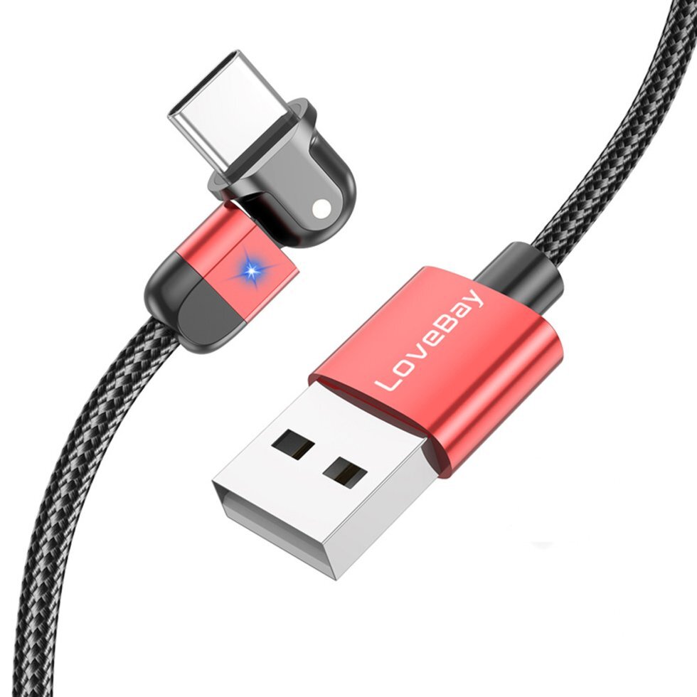 USLION 3A USB Type C Кабель для передачи данных Поворот на 180 ° LED Индикатор быстрой зарядки для P30 P40
