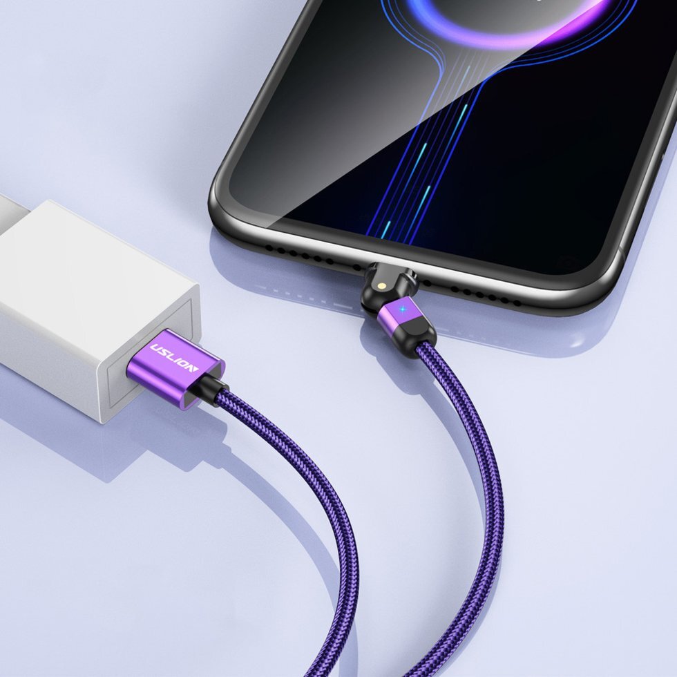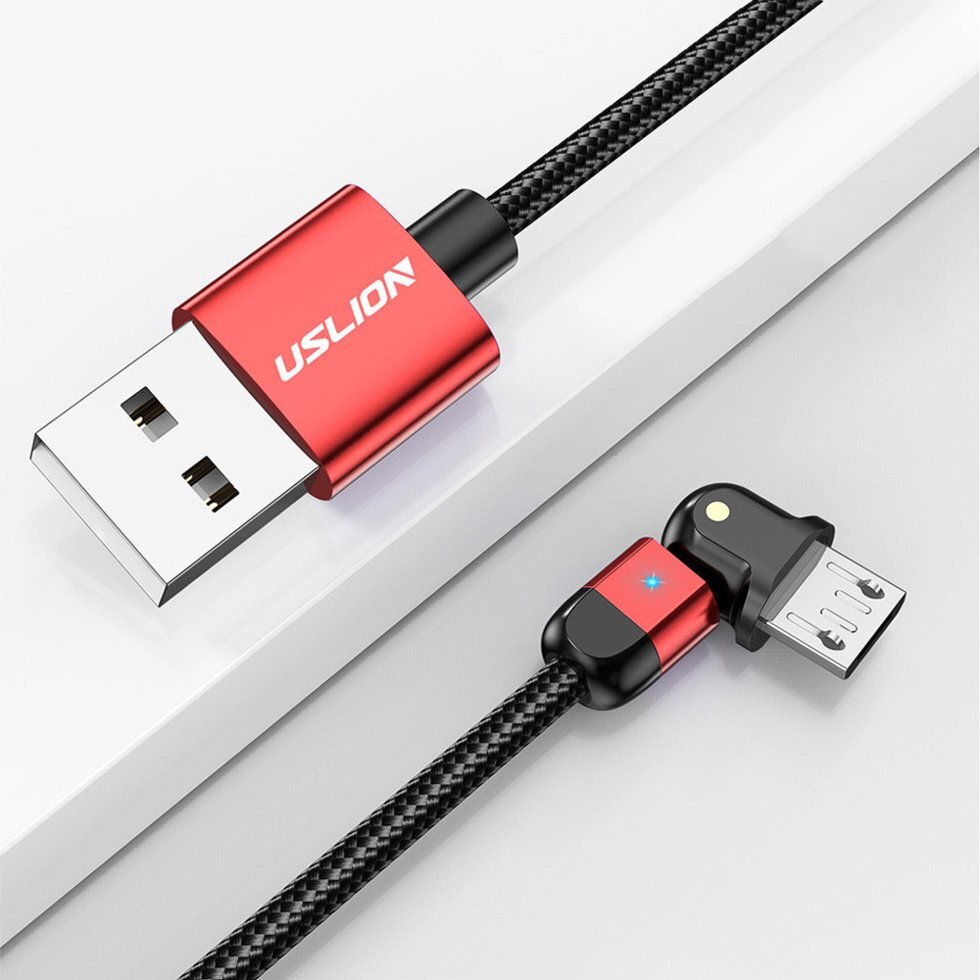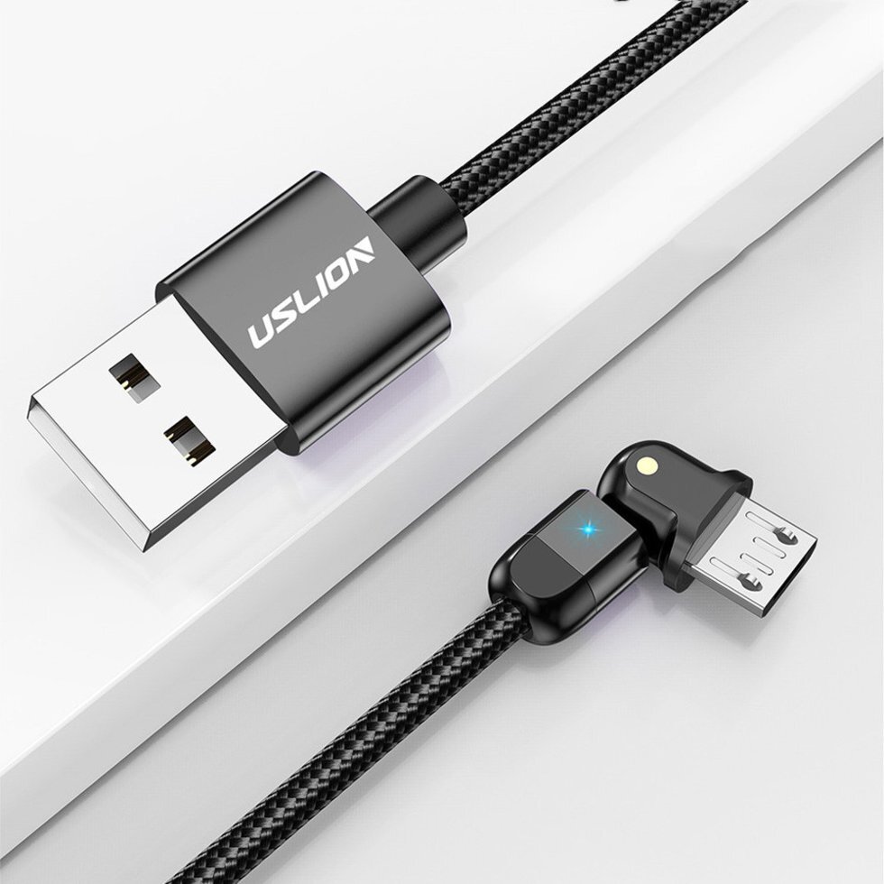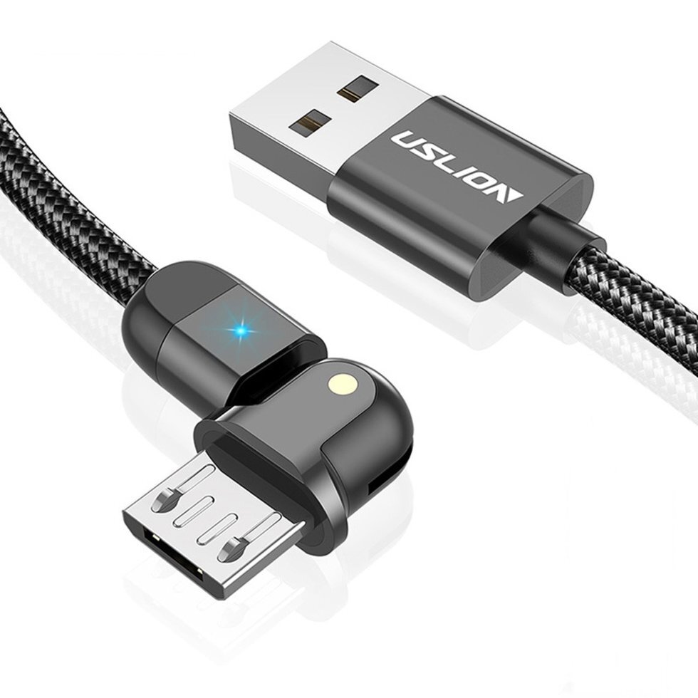 USLION 3A Micro USB 180 Поверните индикатор LED Кабель для быстрой зарядки данных для OPPO