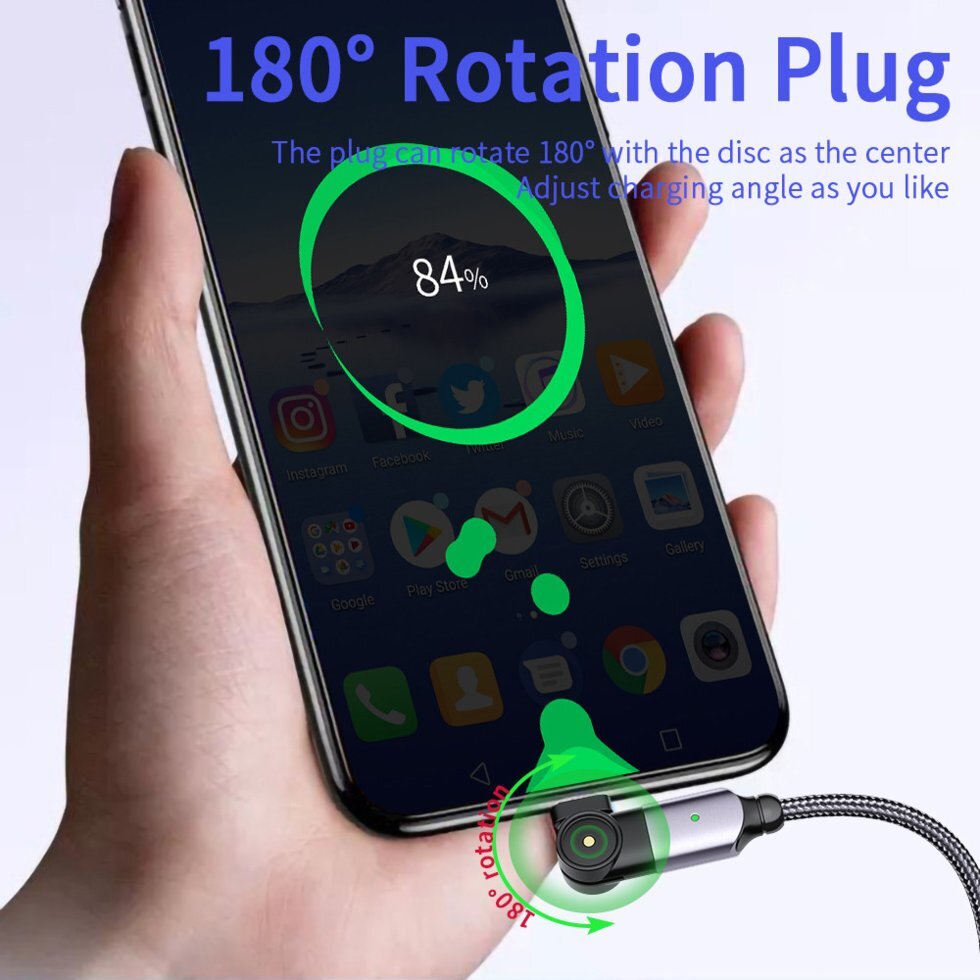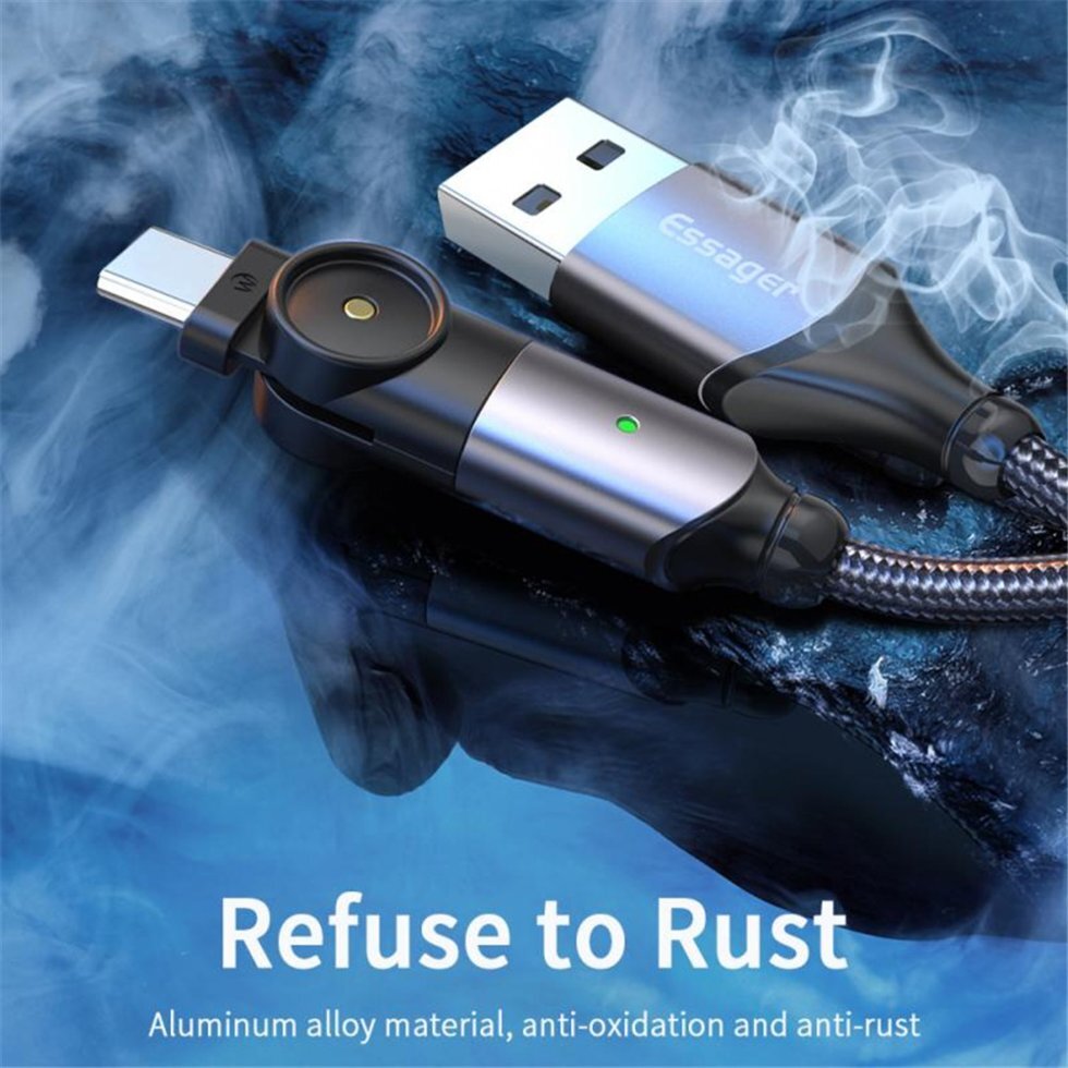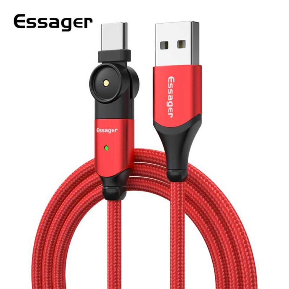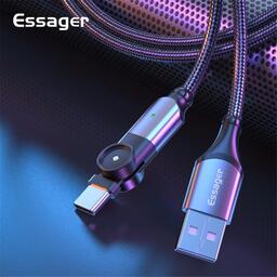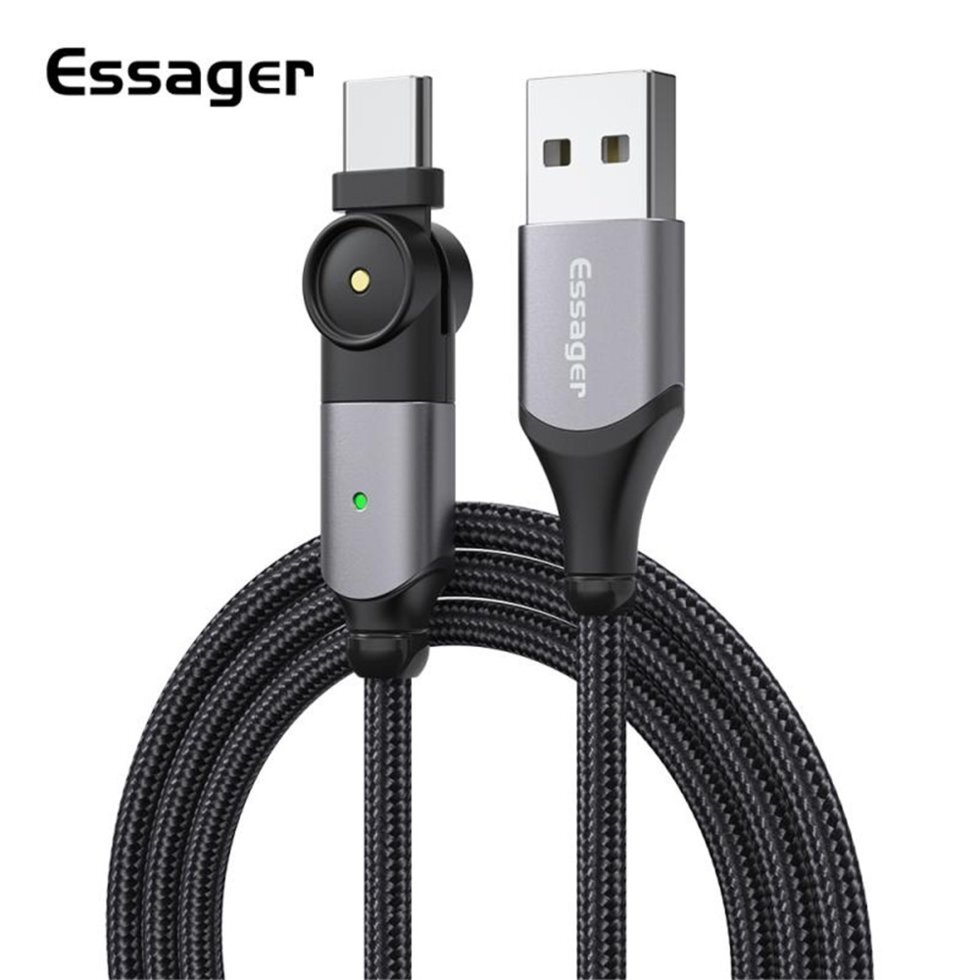 ESSAGER USB Type-C кабель для передачи данных, вращающийся на 180 градусов, быстрая зарядка для Mi10 P30 P40