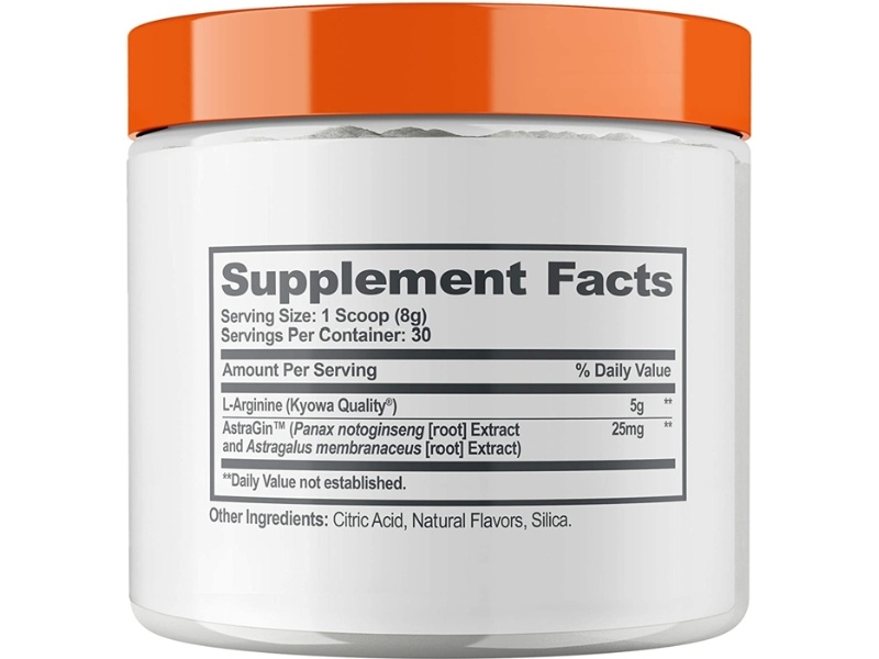- Содержание питательных веществ в одной порции L-Аргинин 5000 мг, Женьшень 25 мг