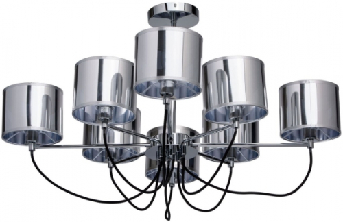 Люстра MW-light 8x40W E14 из коллекции «Лацио» — это конструкция, сочетающая в себе легкость и строгий минимализм. Основание из металла серебристого оттенка плавно переходит в геометричные рожки с фактурными акриловыми абажурами, также выполненными в оттенке хром. Все вместе смотрится очень эффектно, не перегружает пространство и освежает обстановку комнаты.Люстра в стиле модерн подойдет для обустройства спальни, гостиной или кабинета. Для ее работы требуется 8 лампочек с цоколем типа E14 и максимальной мощностью 40 W. Степень пылевлагозащиты небольшая — IP20, чего достаточно для использования прибора в доме или квартире с умеренной влажностью.