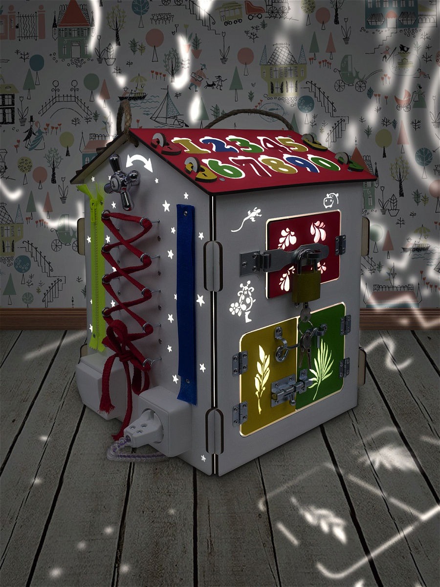 Бизиборд BUSYMOTIK Домик со светом по методике Монтессори