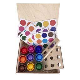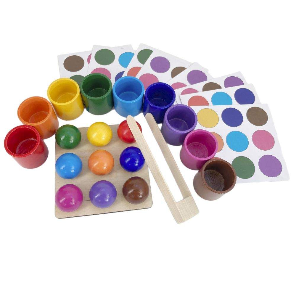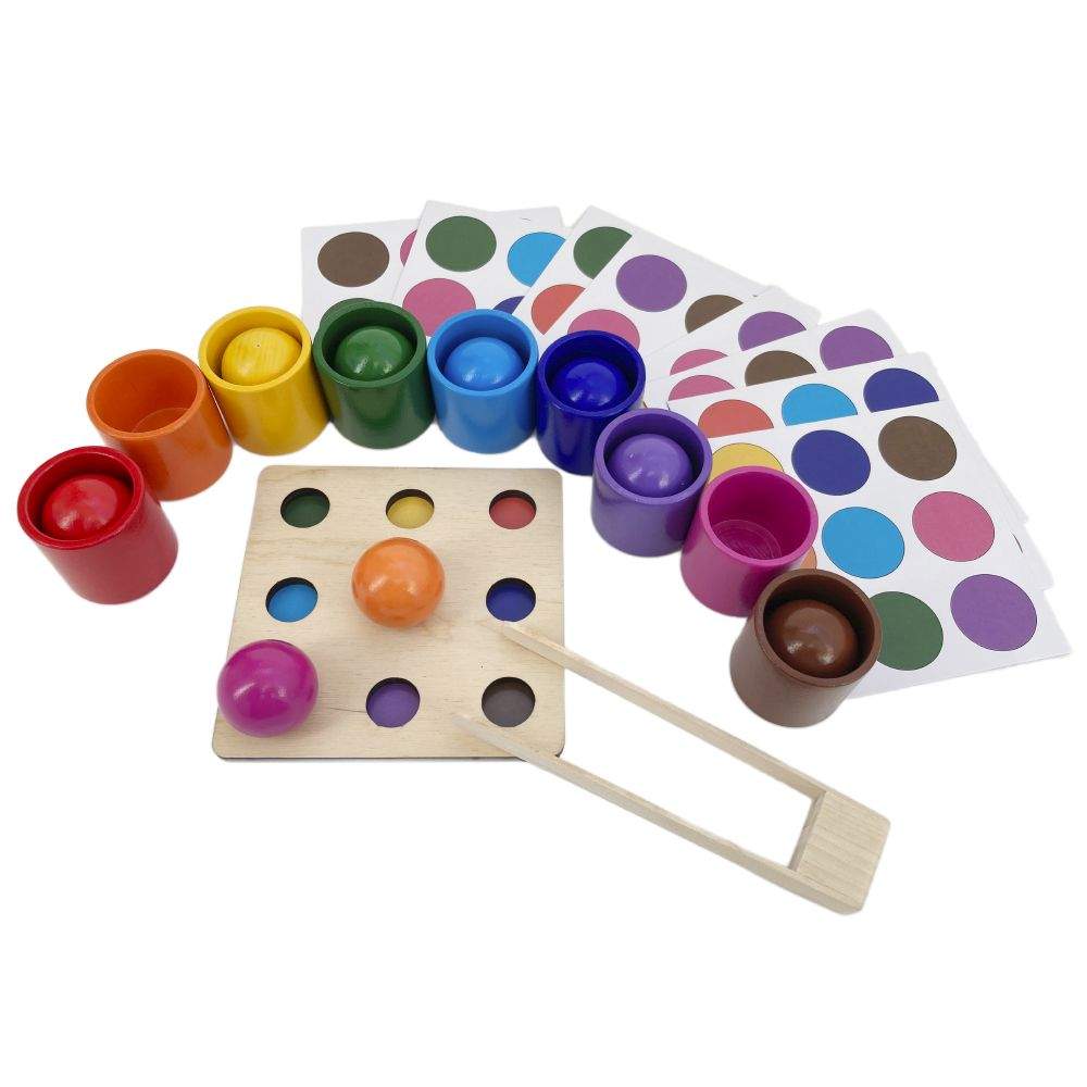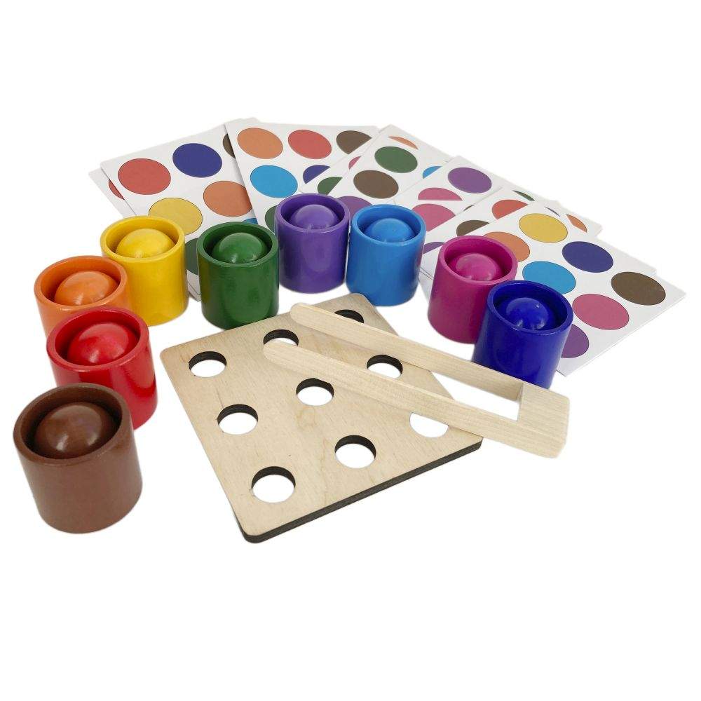 - Примечание Комплектация:-Шарики 9 цветов (красный, красный, оранжевый, желтый, зеленый, голубой, синий, фиолетовый, коричневый, розовый) диаметром 30 мм.-Стаканчики 9 цветов (красный, красный, оранжевый, желтый, зеленый, голубой, синий, фиолетовый, коричневый, розовый) 40*40 мм.-Деревянная дощечка с отверстиями под шарики для выполнения заданий 11*11 см.-Деревянный пинцет.-Карточки с заданиями - 9 штук (11*11 см.)-Инструкция с описанием игры.-Деревянная коробка для хранения игры.МАТЕРИАЛЫ: Дерево (липа), безопасный акриловый лак на водной основе, итальянская акриловая краска на водной основе.