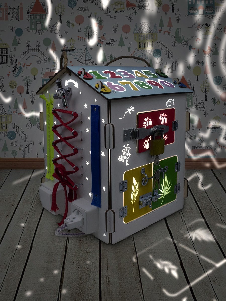 Бизиборд BUSYMOTIK Домик со светом Монтессори
