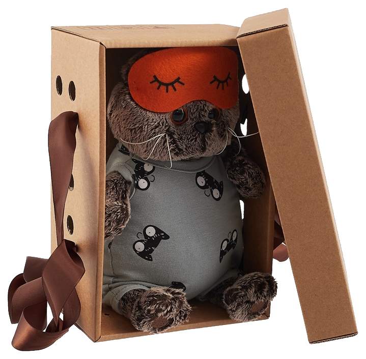 Мягкая игрушка BUDI BASA Басик в сером комбинезоне и маске для сна, 25 см