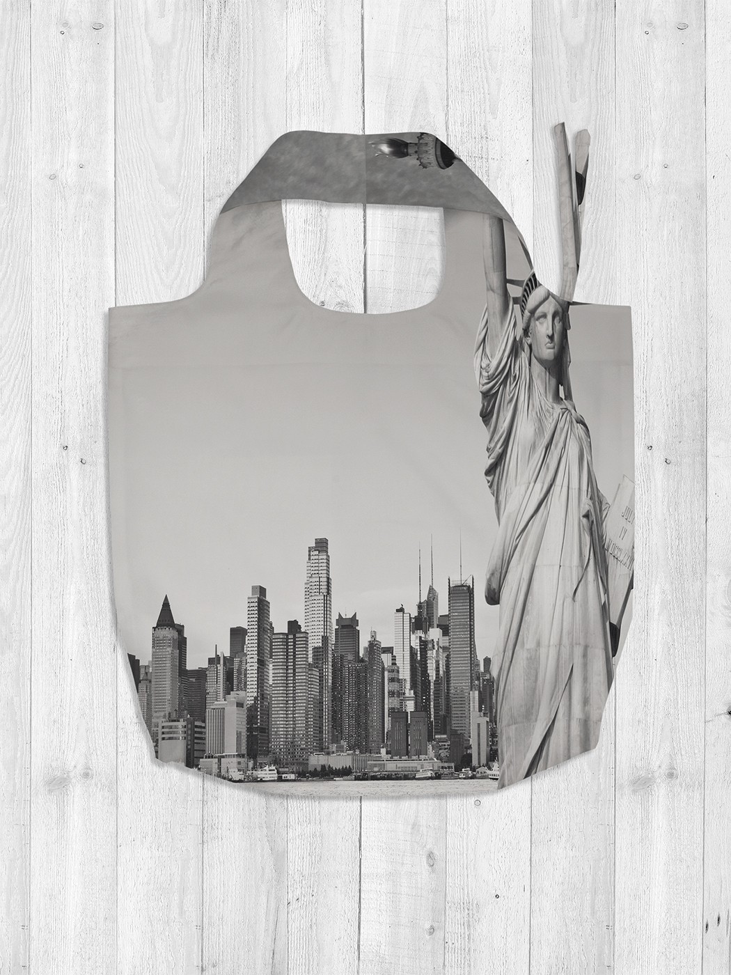 - Наименование модели Сумка-авоська с фотопринтом «Статуя Свободы у города», 46x65x7 см
