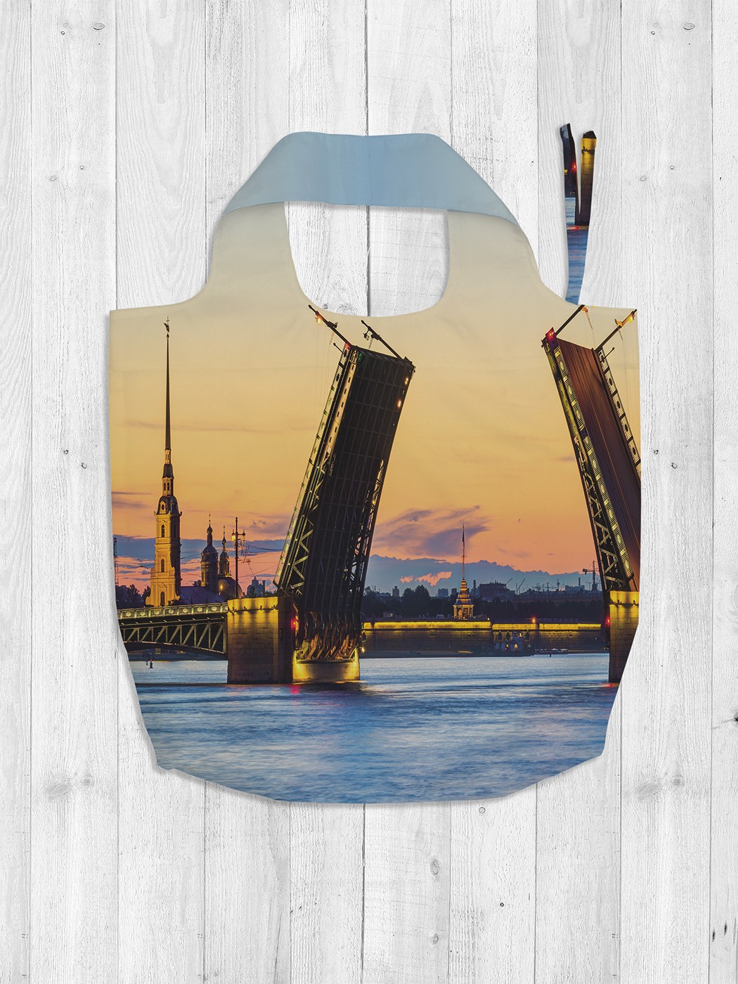 • Наименование модели Сумка-авоська с фотопринтом «Разведенный мост», 46x65x7 см