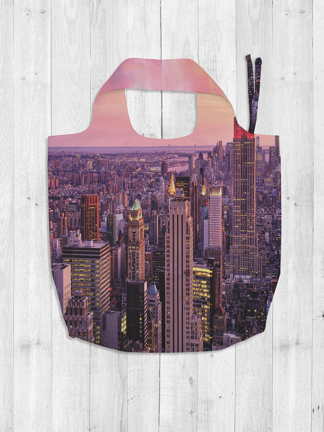 - Наименование модели Сумка-авоська с фотопринтом «Полет над небоскребами», 46x65x7 см