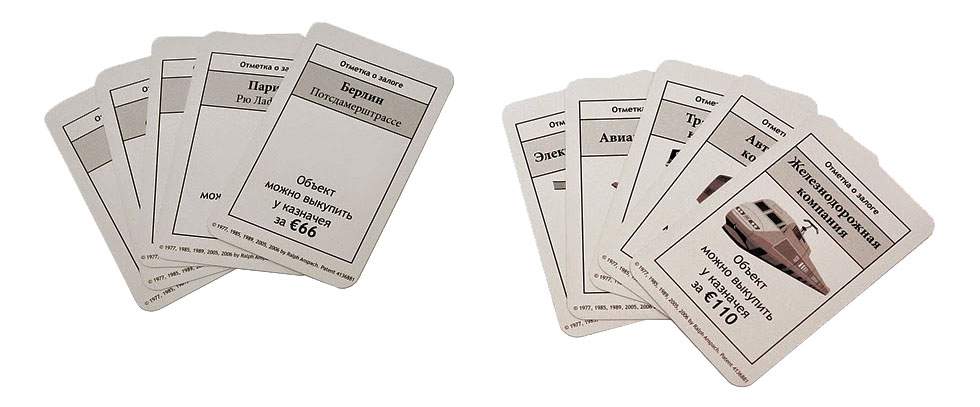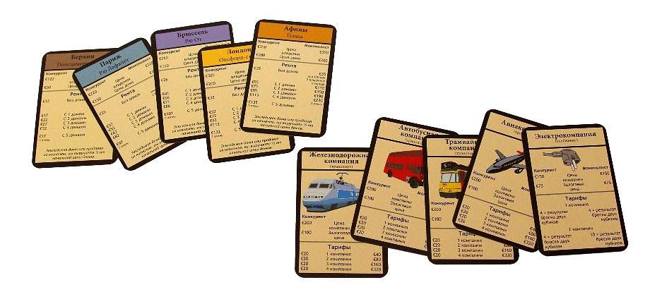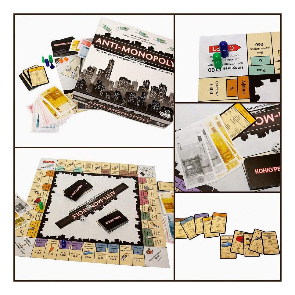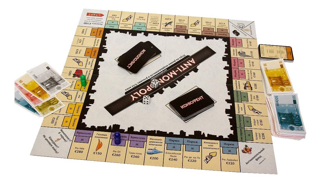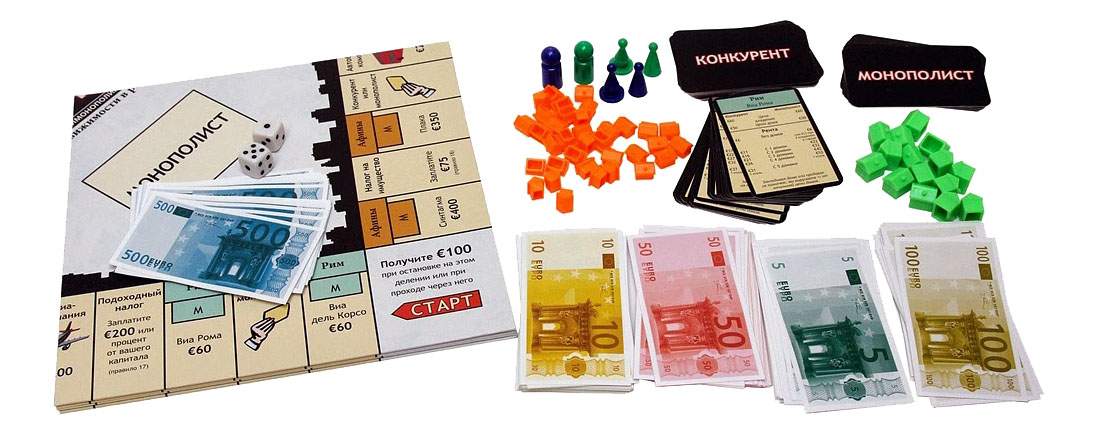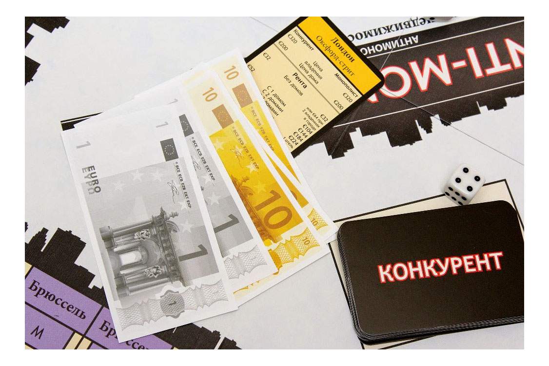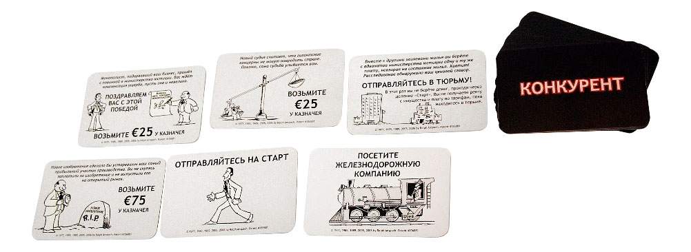 • Комплектация Игровое поле, правила игры, 6 фишек игроков, 50 фишек домов и отелей, 25 карт монополистов, 25 карт конкурентов, 28 карт владений, 260 банкнот, 2 кубика