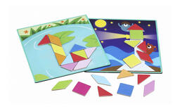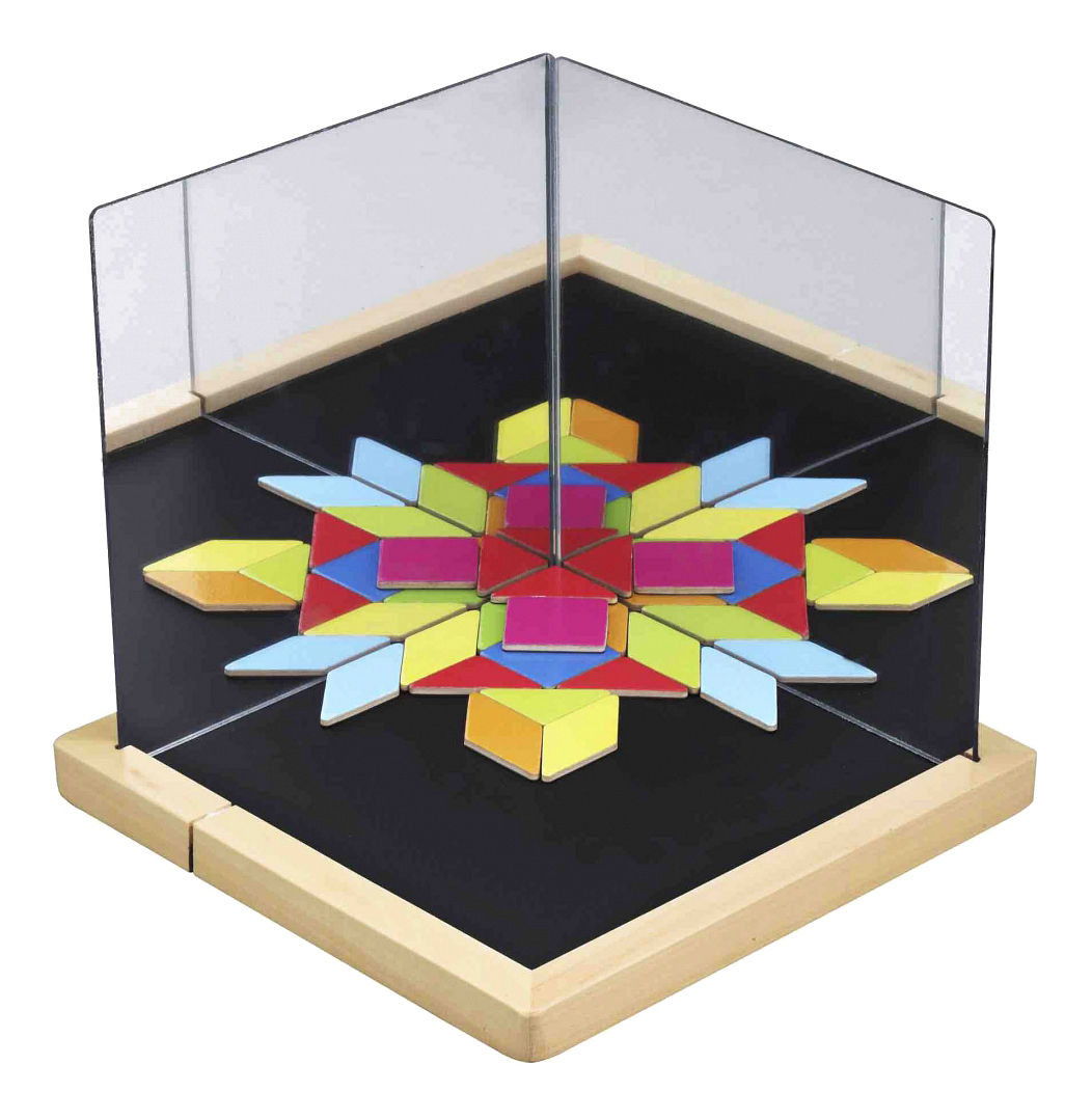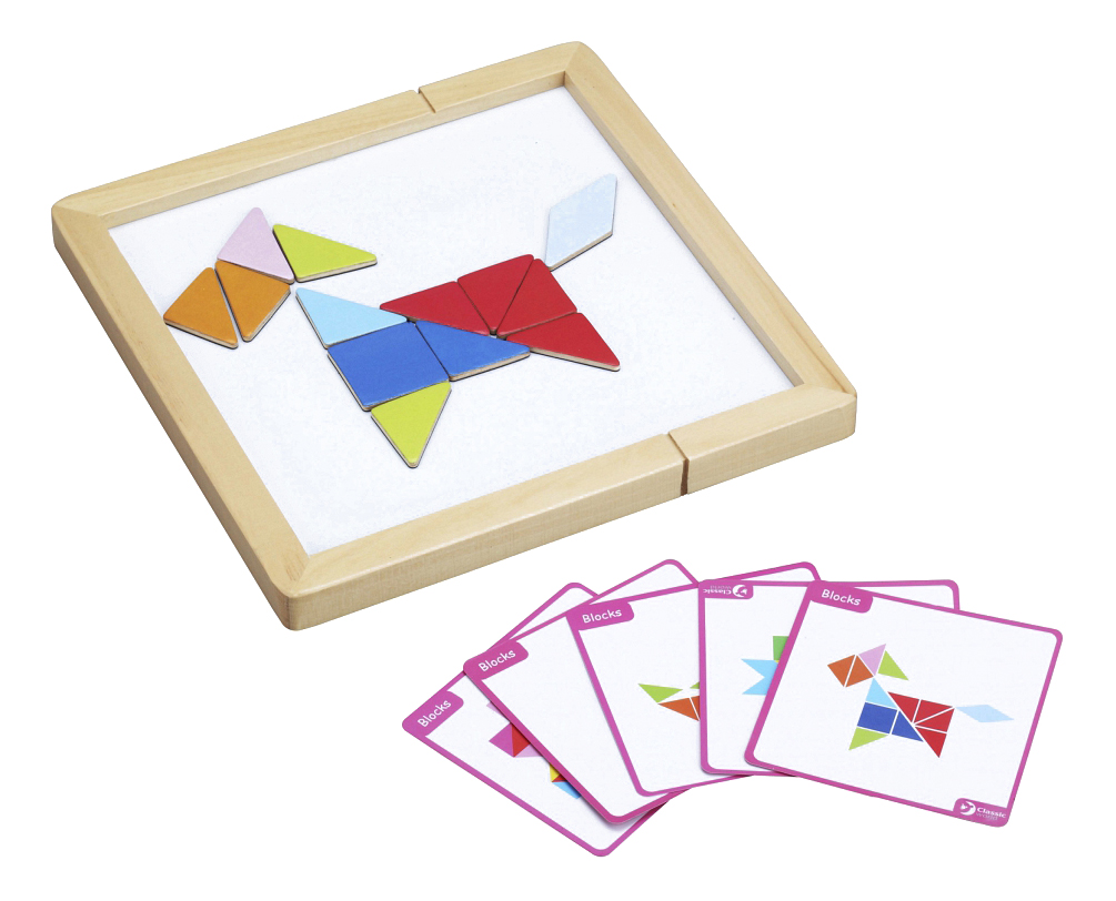 - Комплектация двусторонняя магнитная доска, 44 деревянных магнита, 2 зеркальные пластины, 5 двусторонних карточек с заданиями, 2 шаблона