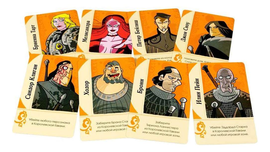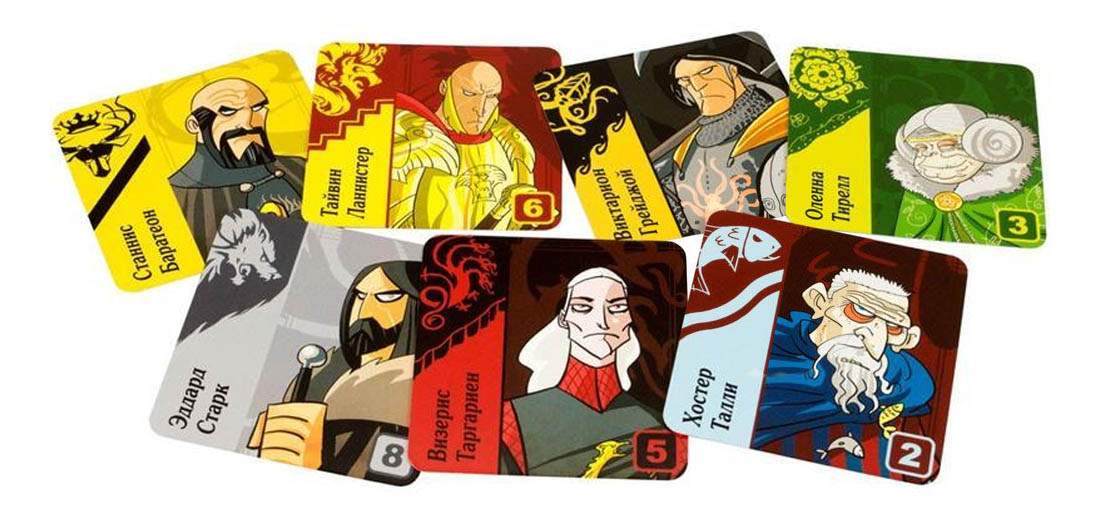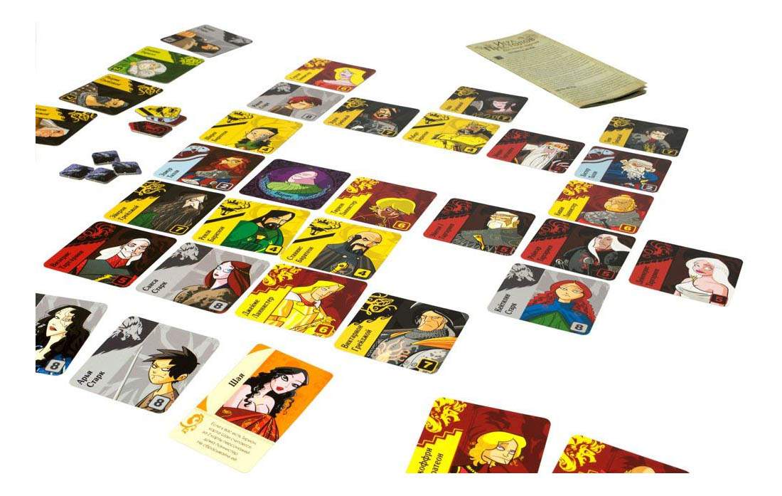 • Комплектация 35 карт персонажей, 1 карта Вариса, 14 карт союзников, 7 жетонов знамён, 4 жетона трёхглазых ворон, правила игры