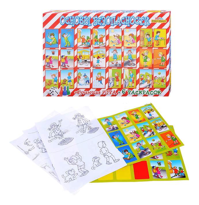 - Комплектация правила игры - 1 шт; игровое поле - 1 шт; кубик - 1 шт; фишки - 5 шт; карточки - 32 шт; раскраски - 6 шт