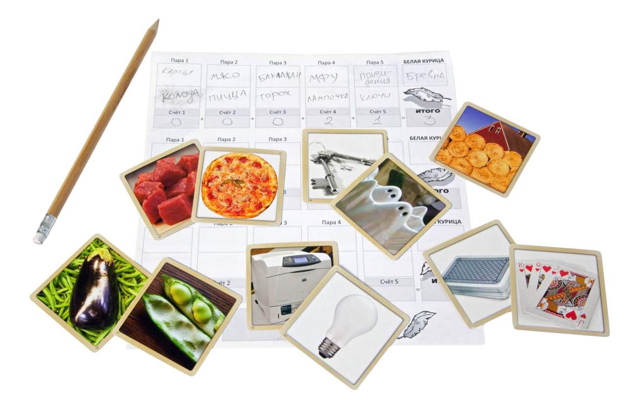 • Комплектация 154 фотокарточки, блокнот для ответов, песочные часы, 8 карандашей, правила игры