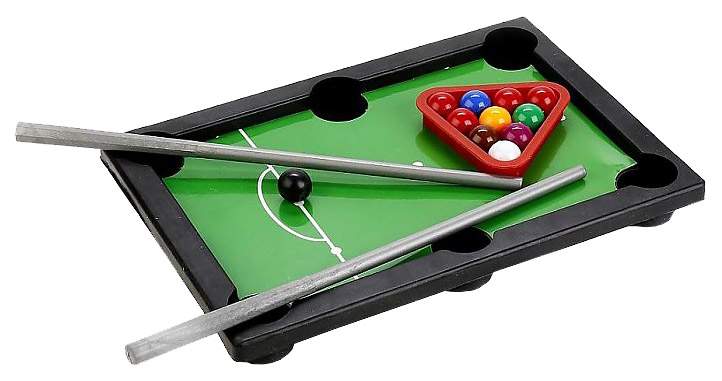 - Комплектация игровой стол - 1 шт; кий - 2 шт; треугольник - 1 шт; шар - 11 шт