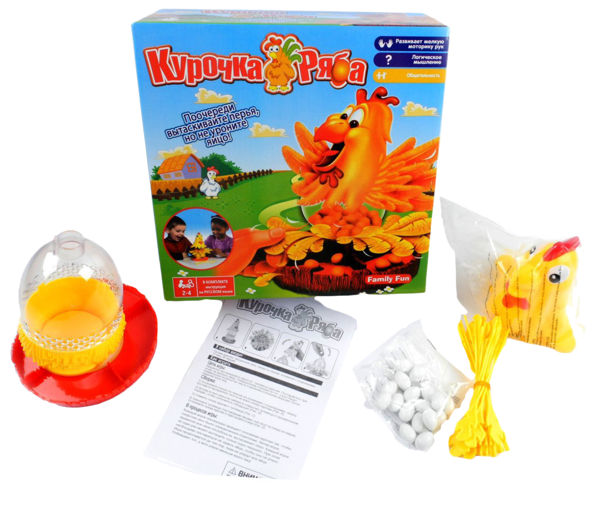 - Комплектация голова курочки, туловище, гнездо, лоток для яиц, 17 яиц, 30 перьев
