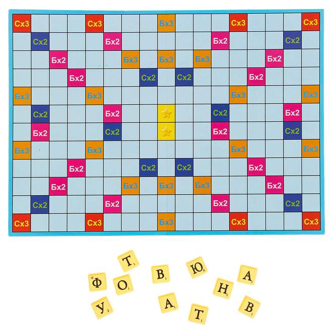 - Комплектация игровое поле - 1 шт; фишки-буквы - 100 шт.