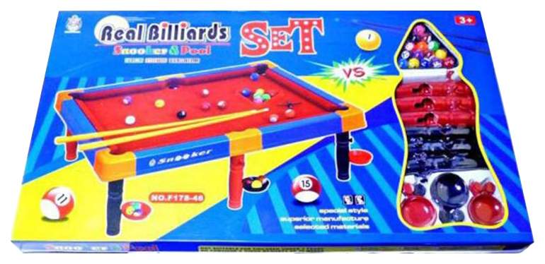 - Комплектация игровой стол - 1 шт; кий - 2 шт; треугольник - 1 шт; шар - 15 шт; ножки - 6 шт; емкость для шаров - 6 шт