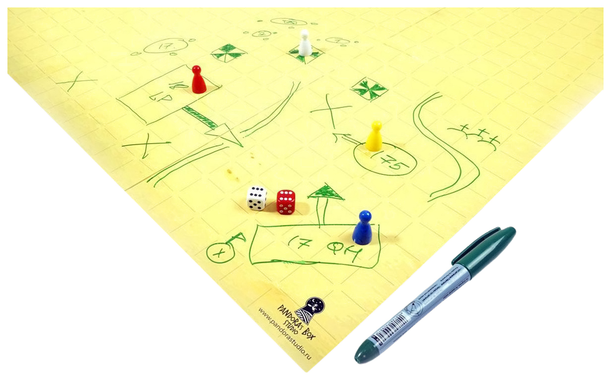 - Комплектация игровое поле; 2 кубика; 4 фишки; маркер: инструкция