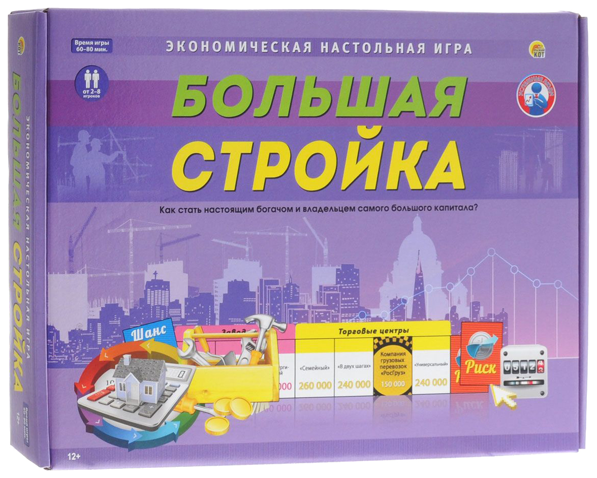 - Комплектация игровое поле; игровой кубик - 2 шт; игровая фишка; игровая карточка; маркеры; инструкция; деньги