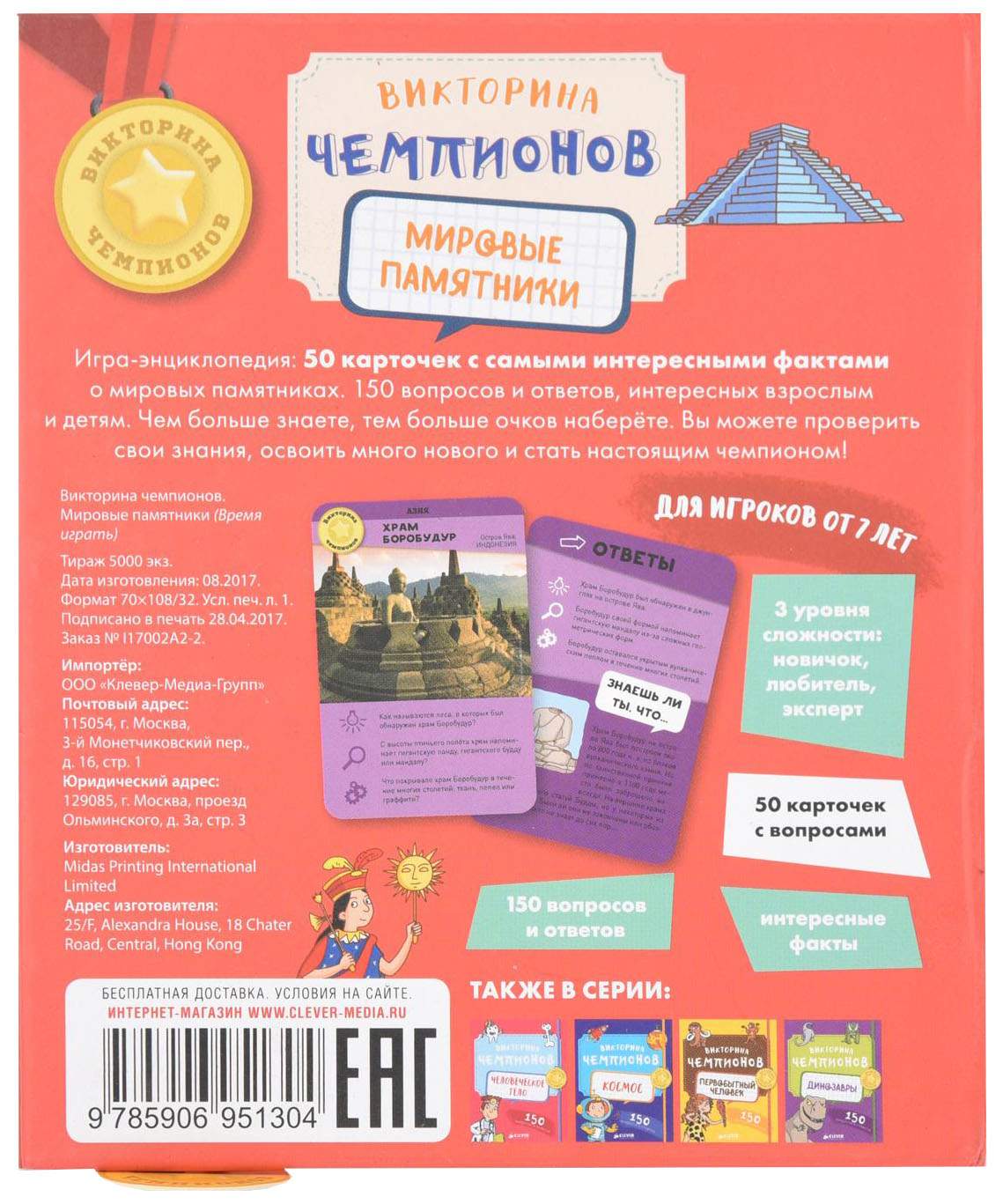 Настольная игра «Викторина чемпионов. Мировые памятники»