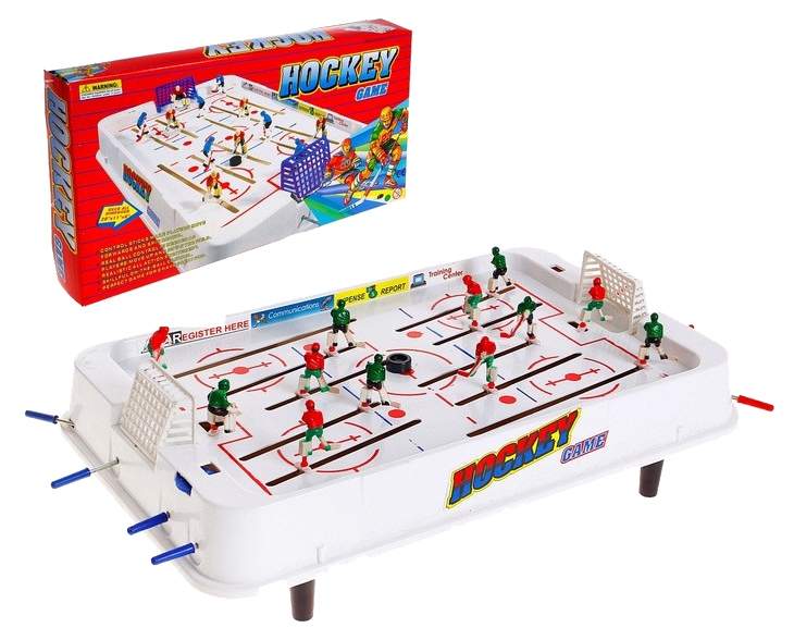 - Комплектация игровое поле; фигурки игроков; шайбы; съемные ворота