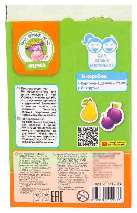 • Комплектация картонные детали - 29 шт; коробка-сортер с потайным ящиком - 1 шт; инструкция - 1 шт